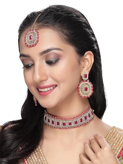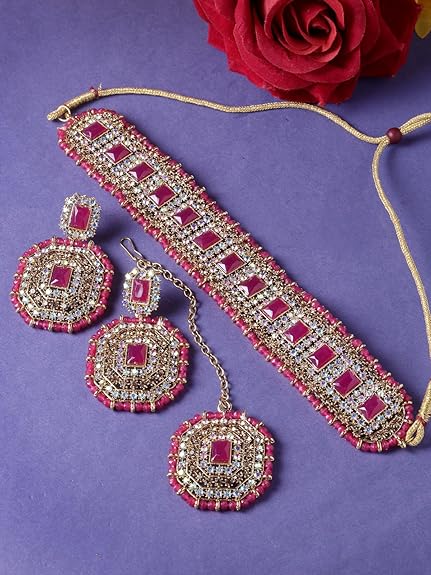 - Decent Traditional Design: The Sukkhi Decent Traditional Rani Pink Kundan & Beads Choker Necklace Earring with Maangtika Jewellery Set features a classic and elegant design, perfect for women who appreciate timeless beauty.