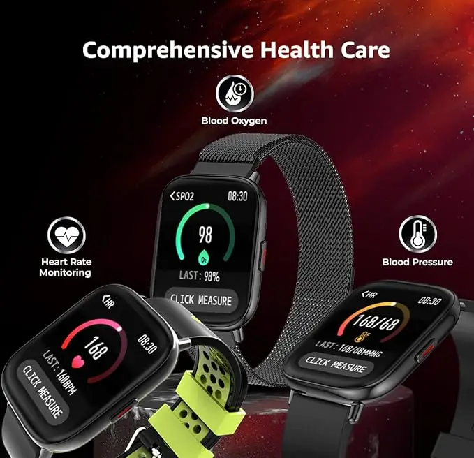 - Health Protection – This smartwatch has Built-in SpO2/oxygen measurement, blood pressure, Dynamic Heart rate tracking and sleep monitoring keep you informed about physical condition