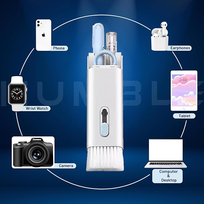 - {7-in-1 Cleaning Kit} : Includes essential tools for thorough cleaning of headphones, keyboards, monitors, phones and more.